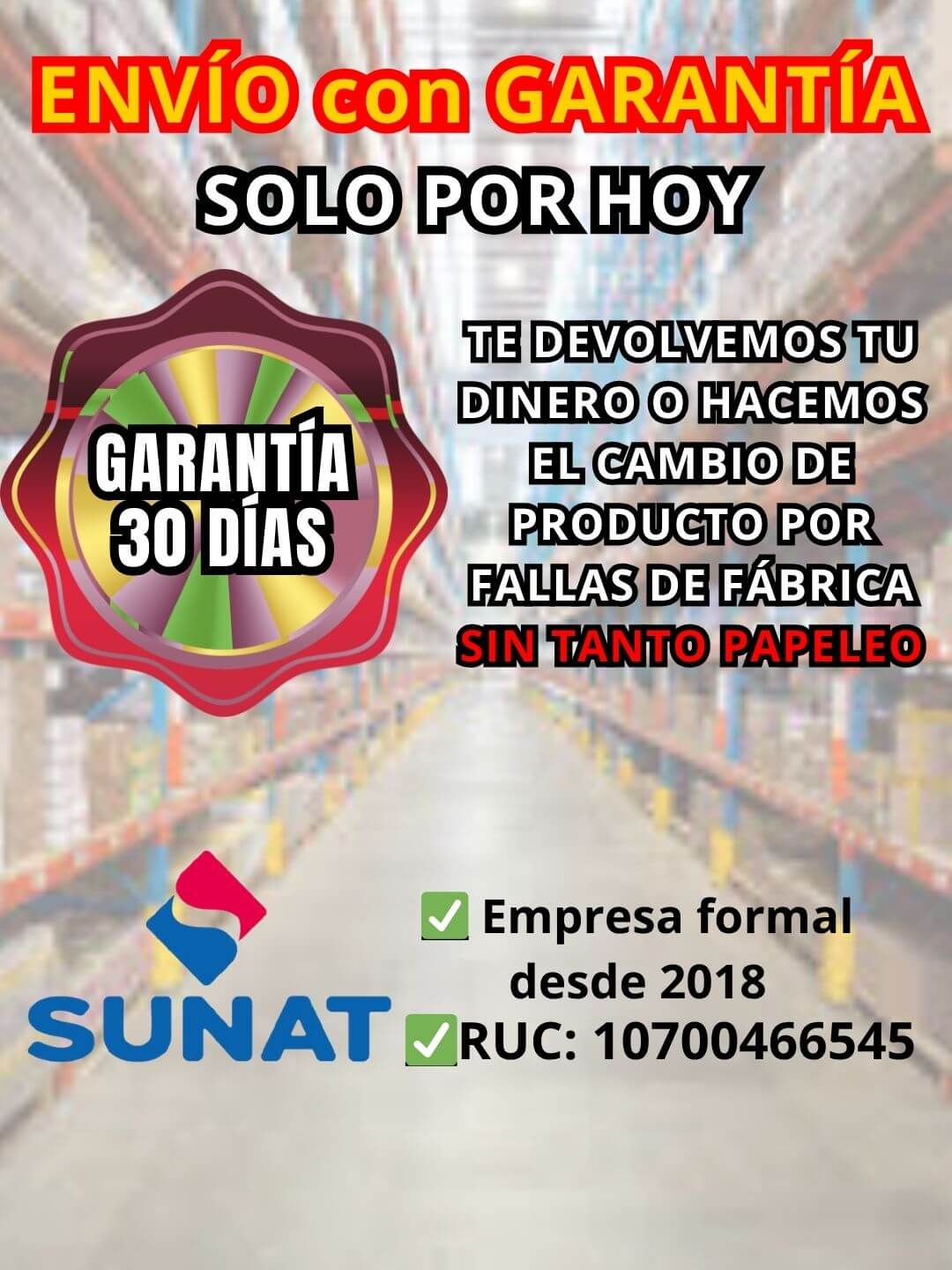 Queremos que esté completamente satisfecho con su compra y por eso ofrecemos una garantía de 30 días por fallas de fábrica.