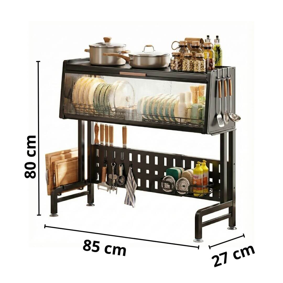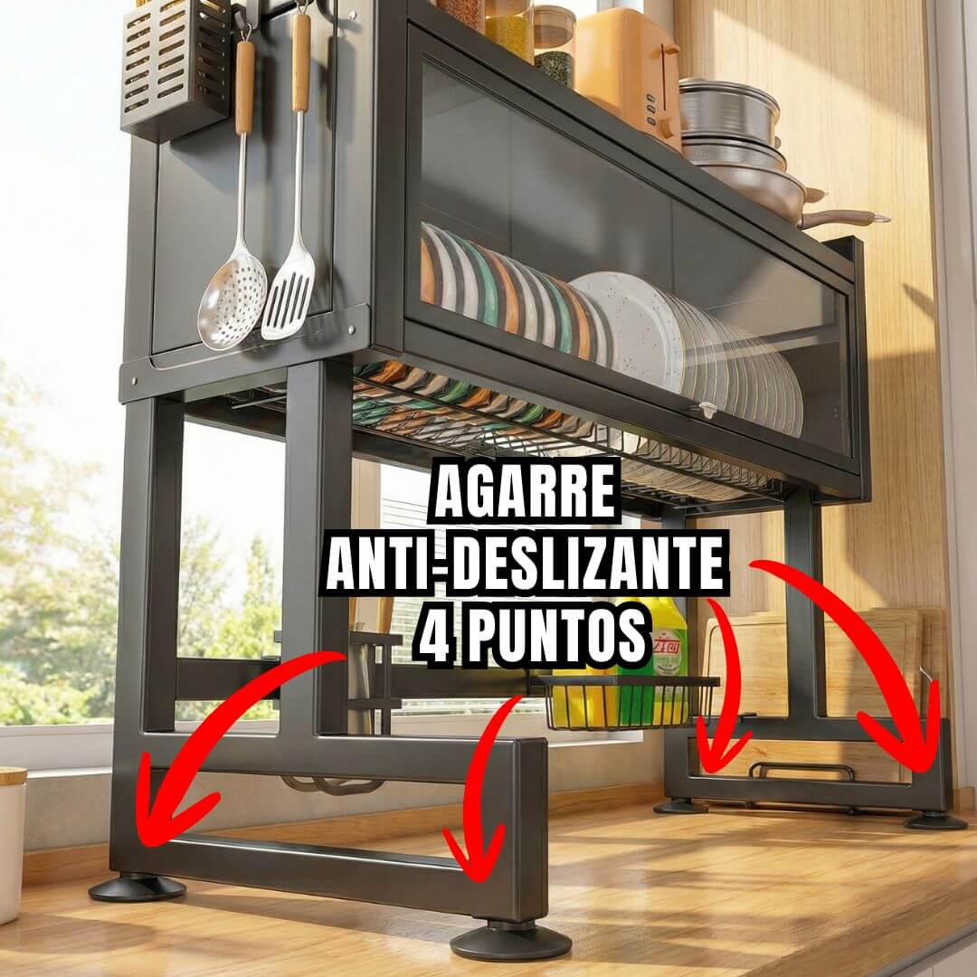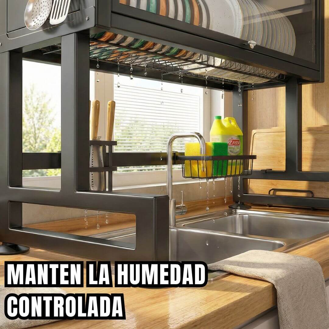 1 escurridor con tapa de acero inoxidable AISI 304 y pintura antisalitre, + 4 ventozas antideslizante + 1 mini llave destornillador especial + 1 llave exagonal + 1 juego de tornillos y tuercas